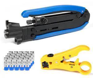 RG6 Compression Tool Coax Cable Crimper Kit RG6 RG11 RG59 F81 with 20PCS F Compression Connectors - BlueYellow