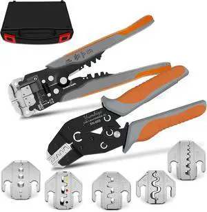 Ratchet Crimping Tool and Wire Stripper Set - 7 in 1 Wire Crimper Tool for Insulated Nylon,Non-Insulated,Ferrule Wire End,Open Barrel Terminals,Solar Connectors