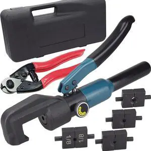 Custom Hydraulic Crimper Tool for 1/8 Stainless Steel Cable Railing Kit Hardware System Fittings, with Cable Cutter