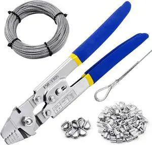 Wire Rope Crimping Tool Kit, Built-in Cutter Swaging Tool, Crimping Loop sleeve from 3/64-inch to 1/8-inch, for Aluminum Oval Sleeves, Double Sleeve