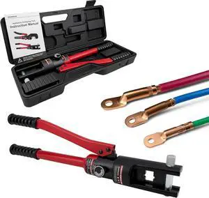 Hydraulic Crimping Tool 10 Tons 12 AWG to 00 (2/0), Battery Cable Crimper Tool with 9 Hexagonal Dies, Hydraulic Wire Crimping Kit for Wire Rope and Battery Terminal Lugs