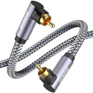SOUNDFAM Dual 90 Degree Subwoofer Cable Double Right Angle RCA Cable [24K Gold-Plated,Hi-Fi Sound] for Home Theater,Subwoofer,Hi-Fi Systems-Grey (26ft/8M)
