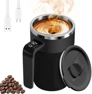 Electric Mixing Mug - Rechargeable Self Stirring Coffee Mug Magnetic Auto Stirring Stainless Steel Cup For Office/Kitchen/Travel/Home Coffee/Hot Chocolate/Milk- 14.5oz/450ml(Black)