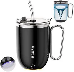 Self Stirring Mug - 4-Color Temp Display Magnetic Electric Auto Mixing Stainless Steel Cup with Straw & Lid For Office/Kitchen/Home/Coffee/Milk- 14.2oz/420ml(Black)