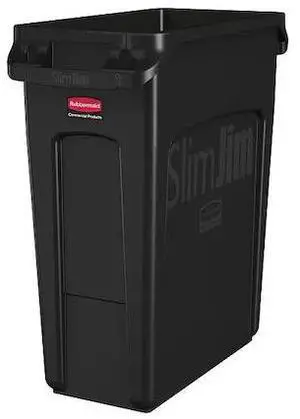 Rubbermaid Commercial 354060BK Slim Jim Receptacle w/Venting Channels, Rectangular, Plastic, 23 gal, Black