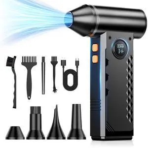 Features: 1.Adjustable 3 speed modes : The air duster is equipped with an upgraded 51000 RPM motor, which provides airflow for deep cleaning. Press 3 seconds and hold the power on, click the button, you can switch 3 airflow modes (33000 RPM, 38000 RPM, 51000 RPM) for different equipment cleaning, so that dust has nowhere to stay