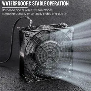 Wathai 120mm x 25mm Waterproof Small Box Fan IP67 12V Computer Fan with AC Plug Speed Controller 110v 120v 220v 240v for Biltong Box, Grow Tent, Terrarium, Aquarium, Greenhouse Cooling