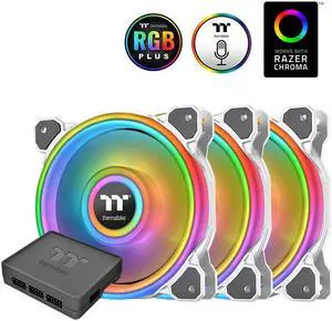 Thermaltake Riing Quad 140mm 16.8 Million RGB Color (Alexa, Razer Chroma) Software Enabled 4 Light Rings 54 Addressable LED 9 Blades Hydraulic Bearing White Case/Radiator Fan, 3 Pack, CL-F101-PL14SW-B