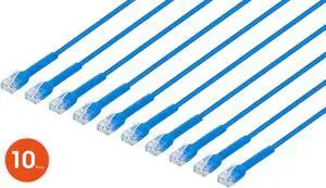 Intellinet Cat6 U/UTP FlexiBoot Slim Network Patch Cable, 3 ft., Blue, 10-Pack, 10G, 250 MHz, 100% Copper, 32 AWG, RJ45, Stranded, Highly Bendable, Gold-plated Contacts- Brand: Intellinet Network Solutions