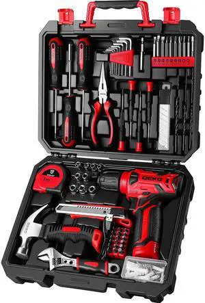 Home Tool Kit with Power Drill 108PCS Power Home Tool Set with 12V 1.5 Ah Battery Powered Screwdriver and Tool Box Electric Cordless Drill Set with Keyless Chuck and Variable Speed Trigger