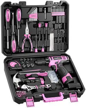 Drill Set, 148-Piece Home Tool Set with 12V Pink Cordless Drill, Hand Tool Kits, and Tool Box, Suitable for Men, Women, and DIY Enthusiasts for Home Improvement.