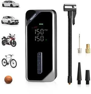 Tire Inflator Portable Air Compressor, 150 PSI Cordless Air Pump, Dual Power 6000mAh, 12V DC Car Plug, Fast Inflation 24L/Min, Auto Shut-Off, LED Light, 4 Preset Modes for Car, Bike, Motorcycle, Balls