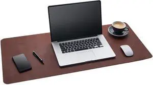 Desk Mat, Office Writing Desk Pad, Large 36" x 17" Dark Brown, for Top of Desks, Gift Ready Elegant Computer Desk Cover Protector PU Leather