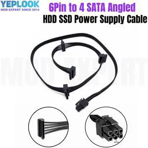 YEPLOOK 6Pin to 4 SATA Angled SSD HDD Hard Driver Power Cable for CORSAIR CX430 CX450 CX500 CX600 CX650 CX750 Modular Power, 50+15+15+15CM 18AWG