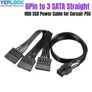 6Pin to 3 SATA Straight SSD HDD Riser Card Power Cable for CORSAIR HX750 HX850 HX1000 HX1200 PLATINUM Modular Power Supply 18AWG