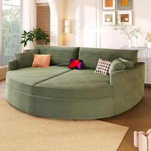 Oversized Double Chaise Lounge Sofa 102.3" Sofa Bed Upholstered Loveseat Sofa Couch with Deep Seat and USB Ports for Living Room, Green