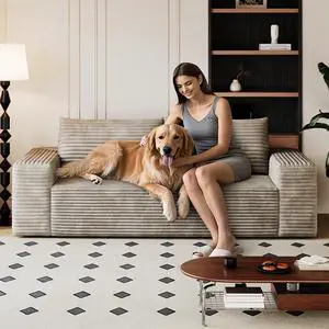 Corduroy Sofa Sleeper Couch Loveseat Sofa with Pillows Comfy Upholstered Deep Seat Sofa for Bedroom,Living Room,Apartment,Office,Dorm-Grey Corduroy