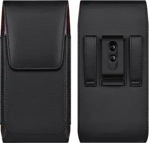 Leather Cell Phone Holster with Belt Clip Strong Magnetic Closure for Galaxy Ultra S25 S24 S23 S22 S21 S20 A17 A16 A15 A14 A13 Motorola G Stylus XL-Black