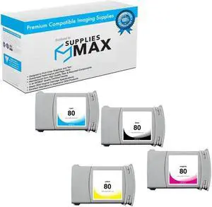 SuppliesMAX Remanufactured Replacement for HP DesignJet 1050C/DesignJet 1055CM Series High Yield Wide Fomat Inkjet Combo Pack (BK/C/M/Y) (350ML-4400 Page Yield) (NO. 80) (C484MP)