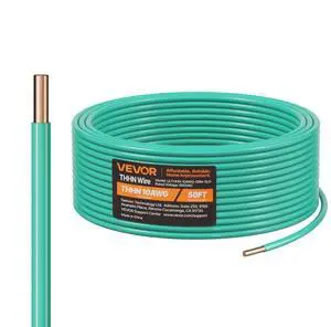 VEVOR 10 Gauge Solid THHN Wire Green Copper Electrical Building Wire PVC Nylon 50 ft