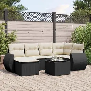 vidaXL Garden Sofa Set Set of 7 Black, Cream