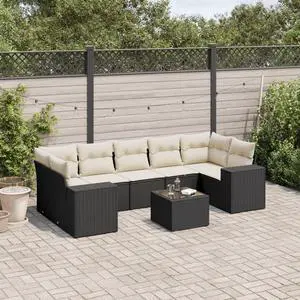 vidaXL Garden Sofa Set Set of 9 Black, Cream White