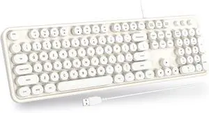 USB Wired Computer Keyboard - Retro Typewriter Keyboard - Full Size Keyboard with Number Pad for PC Laptop Desktop Windows (Creamy White)