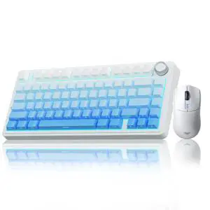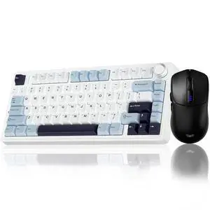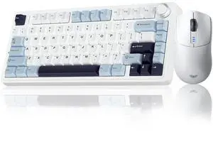 Vszerda Wireless Keyboard and Mouse Combo, F75 75% Mechanical Keyboards, Hot Swappable Custom Keyboard+SC580 Wireless Gaming Mouse White