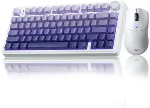 Vszerda Gaming Keyboard and Mouse Combo, 75% Wireless Mechanical Keyboards,Gasket Hot Swappable Custom Keyboard+SC580X Wireless Gaming Mouse Light Purple