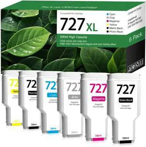 727XL Ink Cartridges Compatible with HP DesignJet T930 T920 T1500 T2500 T1530 T2530, Replacement for HP 727 300-ml Ink Cartridge (300-ml, Matte Black/Photo Black/Gray/Cyan/Magenta/Yellow, 6 Pack)