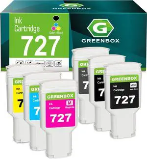 GREENBOX Compatible 727 Ink Cartridges Replacement for HP 727 C1Q12A F9J79A F9J76A F9J77A F9J78A F9J80A Ink Cartridges for DesignJet T920 T930 T1500 T1530 T2500 T2530 (High-Yield, 300ML, 6-Pack)