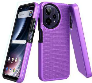 TJS Compatible for Cricket Outlast Case, AT&T Jetmore Case, with Tempered Glass Screen Protector Dual Layer Hybrid Magnetic Support Shockproof Protection Cover Phone Case (Purple)
