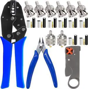 mxuteuk Coaxial Cable Tool Kit,BNC Crimp Tool with 8PCS BNC/UHF Crimp Male Connectors 1PCS Coaxial Cable Stripper 1PCS Wire Cutter for RG58, RG59, RG62, RG174