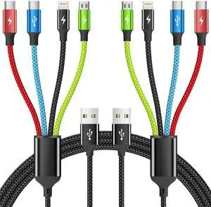 - Compatible Phone Manufacturer: 4 in 1 charging cable for all iPhone 17 Air/16 Pro Max/16/15/14/13/12/11/ SE / Xs Max / Xs / Xr / X / 8/ 7 / 6 / 5 Series/ iPads/ iPad Pro/Air/ Air 2/ iPad mini, Galaxy UItra S25 S24 S23 S22 S21 S20 S10 S9 S8 S7 Note 20 10 9 8 7 6, Google Pixel, HTC, LG, Moto, Smartphone, GPS, Headphones