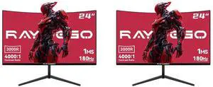 Raywego 24 Inch Curved Gaming Monitor 180Hz FHD 1080P, 3000R, 1ms MPRT, Frameless, FreeSync, Eye Care, DP&HDMI Ports, Wall Mountable(75x75mm), 250cd/m² , Brightness 99% sRGB, VA Panel, Black