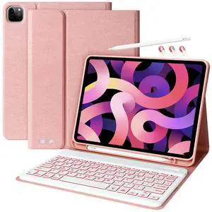 iPad Air 5th/4th Generation Keyboard Case 2022/2020, iPad Pro 11 1st/2nd/3rd 2018/2020/2021 10.9 inch Case with Keyboard & Pencil Holder, Removable 7 Colors Backlit Bluetooth Wireless Keyboard (Green)