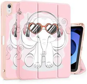 Tuiklol Case for iPad Air 11 inch (M3 2025/M2 2024) 7th/6th Gen/iPad Air 10.9 inch 5th/4th Gen 2022 2020 with Pencil Holder,Slim Protective Auto Sleep/Wake Trifold Stand Cover, Lovely Elephant-Pink