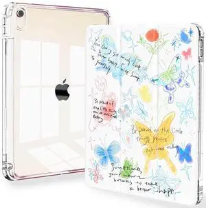 Feams Slim Case for iPad Air 11-inch M3 2025 / M2 2024, iPad Air 5th Generation 2022 / iPad Air 4th Generation 2020 10.9 Inch Case Clear Back with Pencil Holder & Auto Sleep, Butterfly