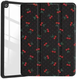 JOYLAND Cute Cherry Polka Dot Case for iPad Air 11 Inch M3(2025) / M2(2024), iPad Air 5th(2022) / 4th (2020) Gen 10.9 Inch, Clear Hard Back Black Case with Pencil Holder Trifold Stand Tablet Cover