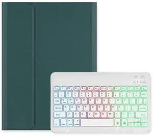 Disonbeir Backlit Keyboard Case for iPad Air 13" (M3/M2), iPad Pro 12.9 (6th/5th/4th/3rd Generation) Case with Colorful RGB Rainbow Backlight Detachable Keyboard Cute Candy Color,DarkGreen+White