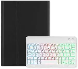 Disonbeir Backlit Keyboard Case for iPad 6th/5th Generation Air Air2 Pro 9.7 inch Case with 7-Color Rainbow Backlight Magnetic Detachable Keyboard Cute Candy Color,Black+White