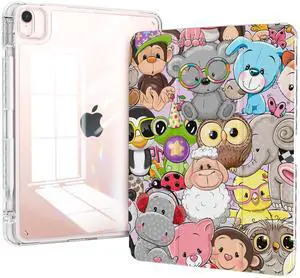 Piznernico Trifold Case for ipad Air 6th/7th 11 inch M2/M3 2024/2025 with Pencil Holder, ipad Pro 11 4th/3rd/2nd/1st Gen, ipad Air 5th/4th Gen 10.9 Cover, Shockproof Clear Back Cover, Cute Animals