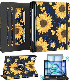 Kidcube for iPad Air 11 Inch Case M3/M2, Air 5th/4th Generation Cases 10.9'', Pro 11'' 2020 - Women Girls Aesthetic Cute Rotating Stand Folio Cover with Pencil Holder & Card Slot Girly Sunflower