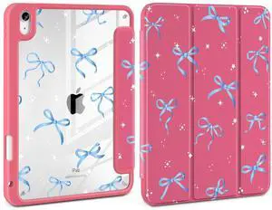 Loyrina Case for iPad Air 13 inch 2025 M3 2024 M2 Release Slim Lightweight Shockproof Cute Hot Pink Cover with Clear Back TPU Edge Pencil Holder Trifold Stand Auto Wake Sleep, Ribbons