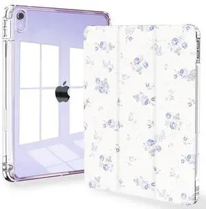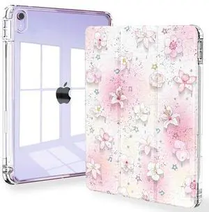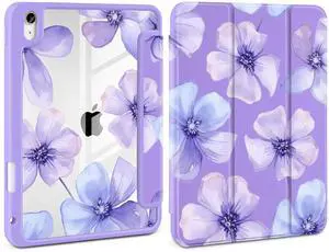 Feams Slim Case for iPad Air 11-inch M3 2025 / M2 2024, iPad Air 5th Generation 2022 / iPad Air 4th Generation 2020 10.9 Inch Case Clear Back with Pencil Holder & Auto Sleep, Cute Purple Blossom