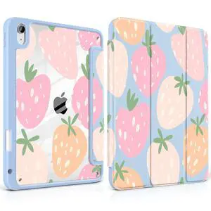 MEEgoodo Case for iPad Air 11 inch M3 2025 / M2 2024,for iPad Air 5th / 4th Generation Case 10.9 inch 2022/2020, Tablet Cover with Acrylic Transparent Back Shell, Cute Drawn Strawberries