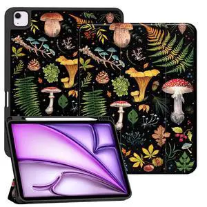 Kidcube for iPad Air 11 Inch Case M3/M2, Air 5th/4th Generation Cases 10.9'', Pro 11'' 2020 - Women Girl Aesthetic Cute Rotating Stand Folio Cover with Pencil Holder & Card Slot Mushroom Flowers