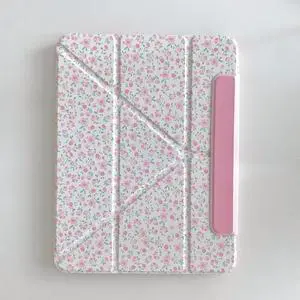 Floral Case for iPad Air 13 inch M3/M2, iPad Pro 12.9 inch 6th/5th/4th/3rd Generation Flower Pattern Cute Slim Leather Folio Case with Pencil Holder Auto Sleep/Wake (Color D)