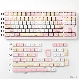 141 Keys MOA Keycaps PBT Dye Sublimation Cute Rabbit Bunny Pink for Mechanical Keyboard AULA F75 Ajazz Ak820Pro Game PC Girl