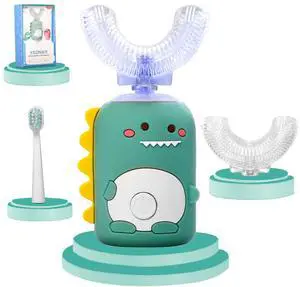 Kids U Shaped Electric Toothbrush for Age 2-12, Rechargeable Toddler Toothbrush with 60S Smart Timer, Dinosaur Design, IPX7 Waterproof & 360°Cleaning,Develop Kids' Brushing Habits